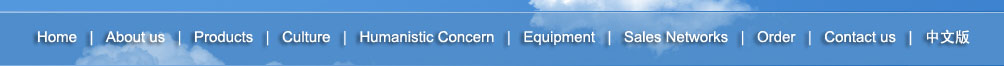 Home | About us | Products | Culture | Humanistic Concern | Equipment | Sales Networks | Order | Contact us | Chinese